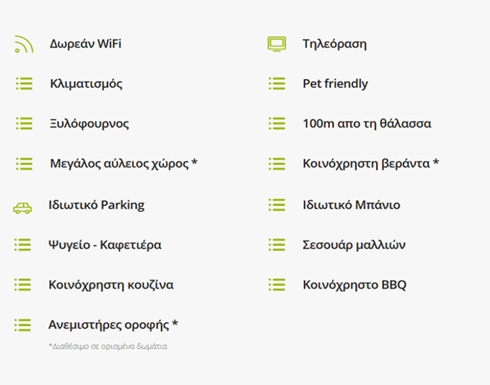 *Προσφέρονται σημεία χαλάρωσης με αιώρες, παγκάκια κλπ & λαχανόκηπος