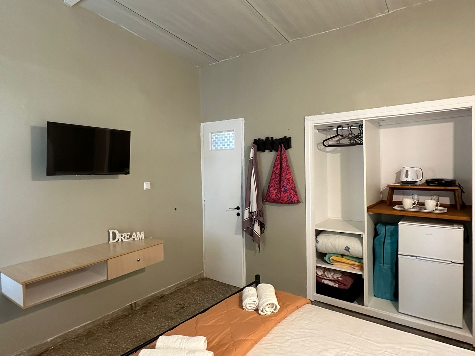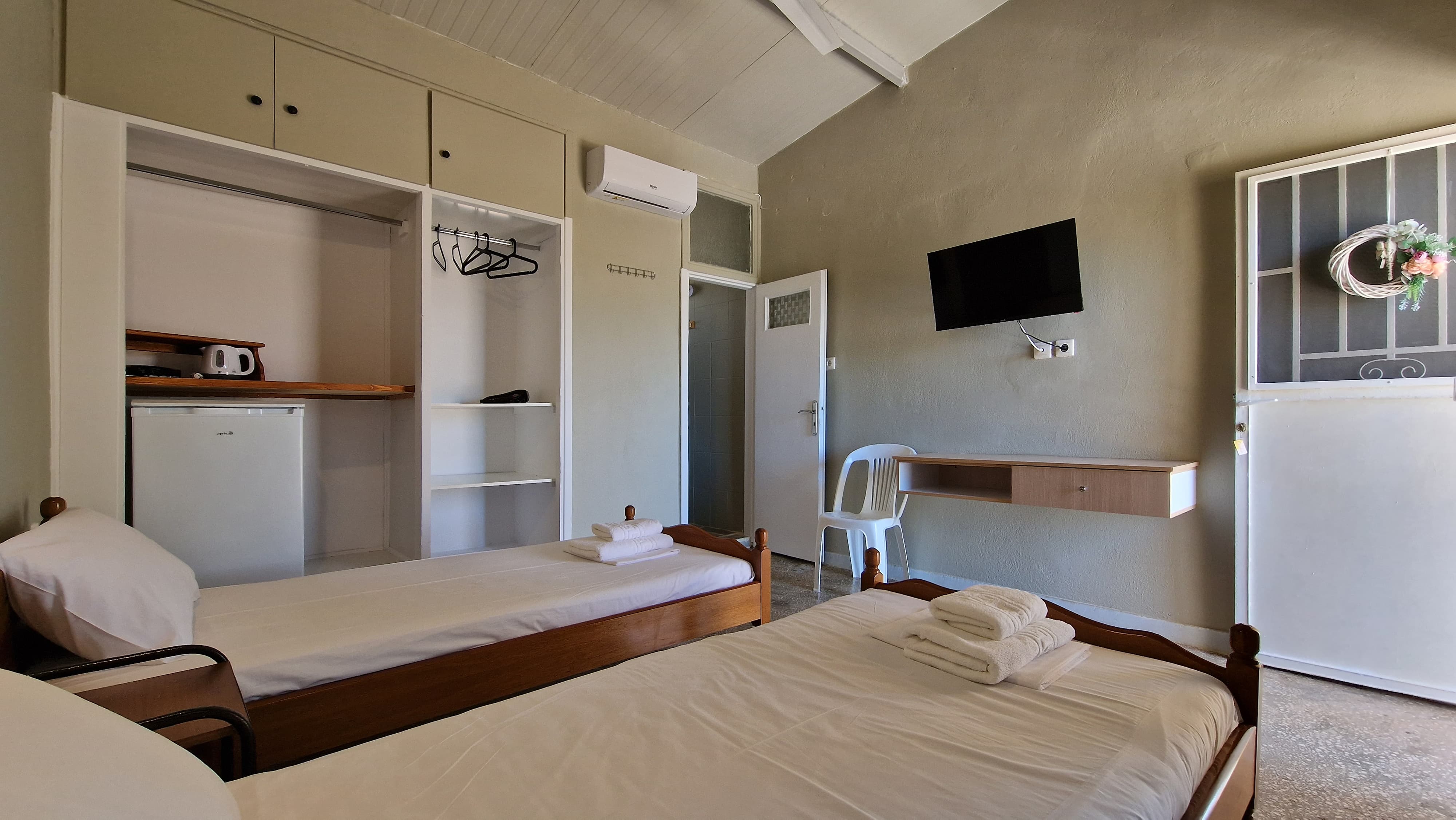 Tο δωμάτιο είναι πλήρως ανακαινισμένο τον Απρίλιο του 2024, εξοπλισμένο με σύγχρονες ανέσεις για να καλύψει κάθε σας ανάγκη. Μείνετε συνδεδεμένοι με το δωρεάν Wi-Fi υψηλής ταχύτητας, παρακολουθήστε τις αγαπημένες σας εκπομπές στην τηλεόραση επίπεδης οθόνης, ή χαλαρώστε με ένα ρόφημα στην αυλή με θέα το κατάφυτο κτήμα μας. Όλα αυτά σε απόσταση λίγων μέτρων από τη πανέμορφη παραλία της Χελωναριάς! Διατίθεται πρωινό με παραδοσιακά προϊόντα. -